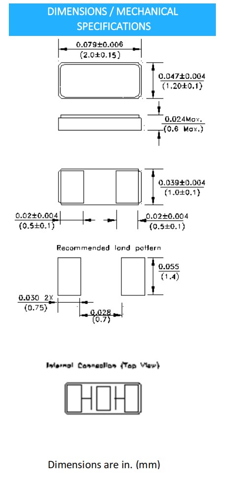 | 進口SMD晶振 | 品牌 | 頻率 | 長度 | 寬度 | 高度 |