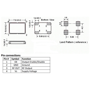 AXE7050M‐50-25‐4F-45.000MHz,7050mm,45MHz,AXTAL晶振,AXE7050M,有源晶振,尺寸圖