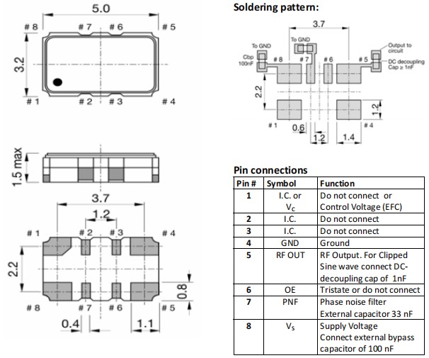 AXLE5032LN-V-33-C-05-4F-16.000,5032mm,16MHz,AXTAL品牌,AXLE5032LN,低噪聲晶振,尺寸圖