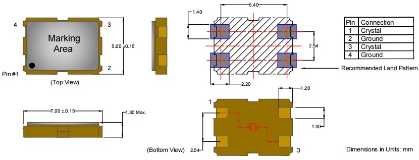 Anderson安德森晶振,AE-131-B-2-4085-2-18-26M0000,計(jì)算機(jī)6G晶振,AE131無源晶振,7050mm石英晶振,尺寸圖