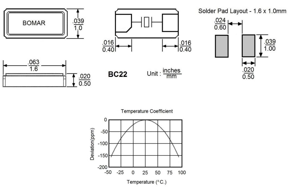 BC22CFD112.5-32.768K,1610mm,Bomar超小型晶振,BC22,智能穿戴設備晶振,參數表