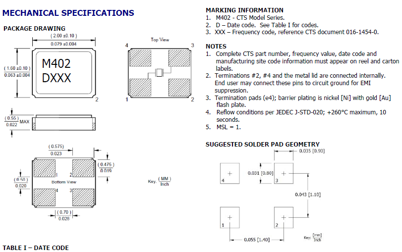 | 402F2001XIAR | CTS Crystal | 402 | MHz Crystal | 20MHz | 4-SMD, No Lead |