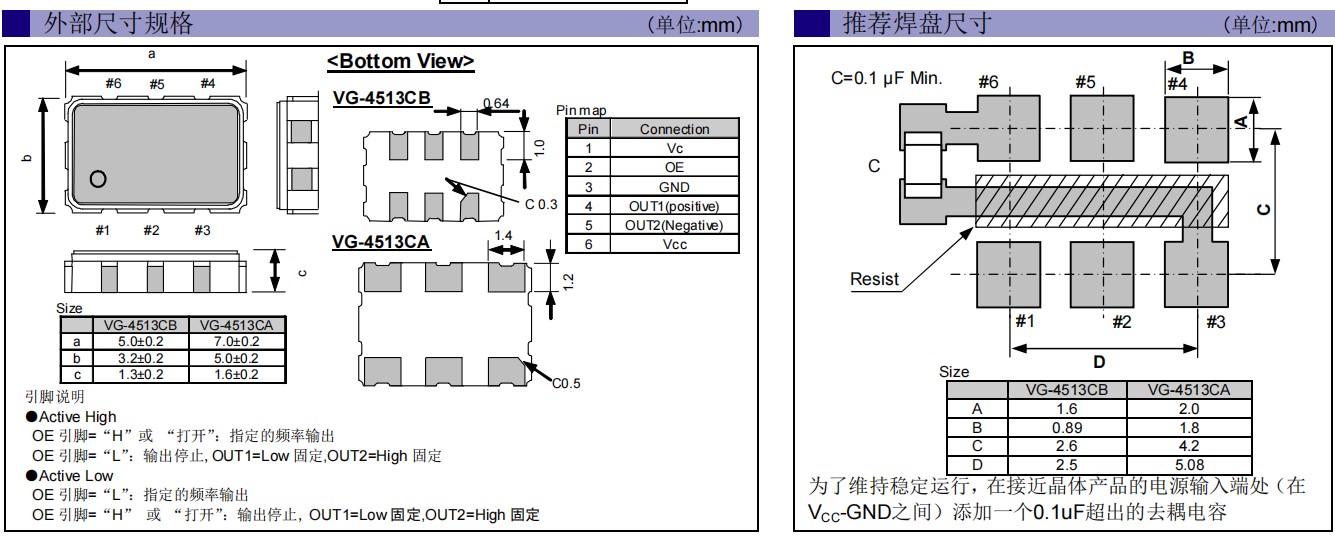 愛普生6G網絡晶振,VG-4513CB,X1G0041510009,LV-PECL輸出VCXO振蕩器,尺寸圖