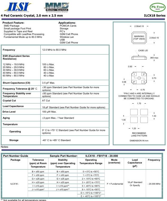 | Load Capacitance | 18 pF Standard (see Part Number Guide for more options) |
