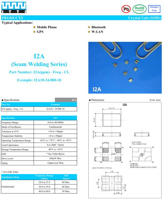 ITTI晶振,I2A晶振,I2A10-24.000-18晶振,貼片晶振本身體積小,超薄型石英晶體振蕩器,特別適用于有目前高速發展的高端電子數碼產品,因為晶振本身小型化需求的市場領域,小型,薄型是對應陶瓷振蕩器(偏差大)和普通的石英晶體振蕩器(偏差小)的中間領域的一種性價比較出色的產品.產品廣泛用于筆記本電腦,無線電話,衛星導航SSD,USB,Blu-ray等用途,符合無鉛焊接的高溫回流焊曲線特性.