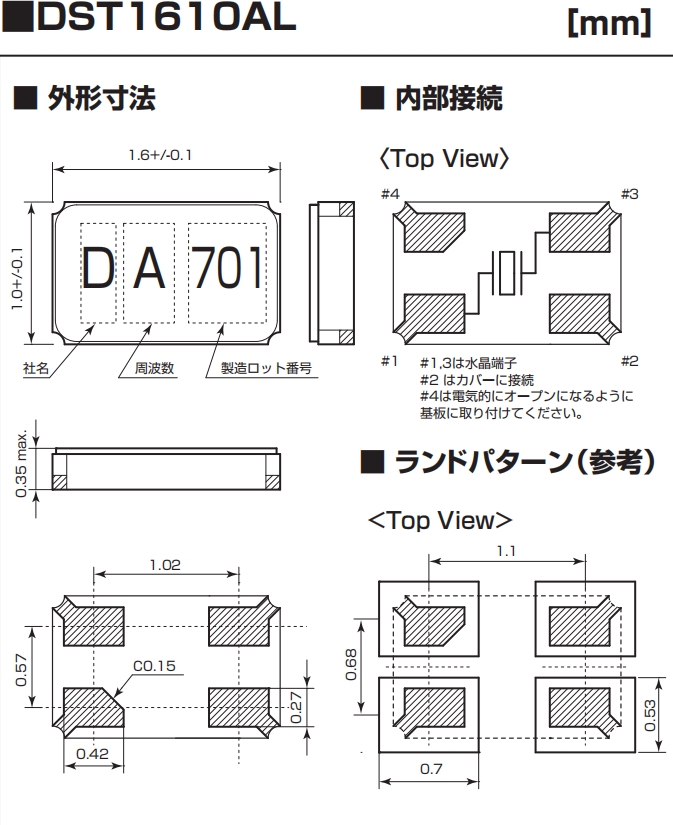 DST1610AL可穿戴設備晶振,KDS諧振器,1TJL070DR1A0009 尺寸圖
