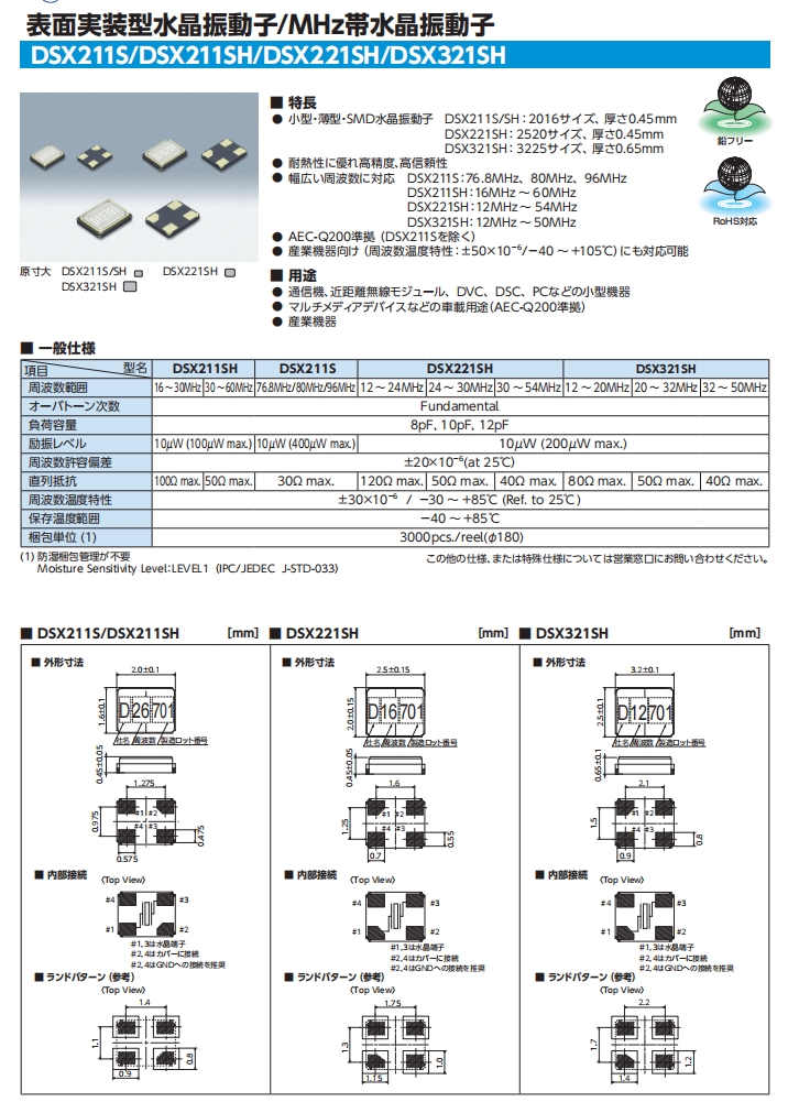 | KDS晶振 | 1C216000EE0AW | DSX321G | 3225 | 16.000M | 8PF | 50PPM | |