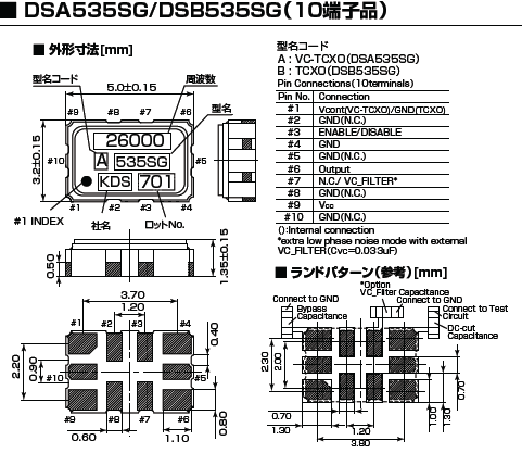 DSB535SG溫補(bǔ)晶振,KDS晶振,5032晶振該體積產(chǎn)品最適合于GPS,以及衛(wèi)星通訊系統(tǒng),智能電話等多用途的高穩(wěn)定的頻率溫度特性晶振.為對應(yīng)低電源電壓的產(chǎn)品.(DC+1.8V ± 0.1V to +2.9V ± 0.1V 對應(yīng)IC可能) 高度:最高0.8 mm,體積:0.0022 cm3,重量:0.008 g,超小型,輕型.低消耗電流,表面貼片型產(chǎn)品.