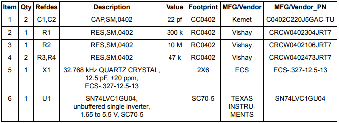 圖1顯示了外部振蕩器電路原理圖.表1顯示了包含組件值,供應商和描述的物料清單.