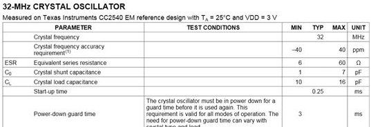 首先,您需要選擇以正確頻率產(chǎn)生共振的晶振.您的無(wú)線電可能支持多個(gè)參考頻率,或者可能需要特定值.常見的PLL參考時(shí)鐘頻率為10-50MHz..(另請(qǐng)注意,生成實(shí)時(shí)時(shí)鐘可能需要32kHz晶振或其中的一些.我們稍后會(huì)詳細(xì)討論這一點(diǎn).)讓我們以SimpleLink™CC2540為藍(lán)牙低功耗解決方案作為示例.