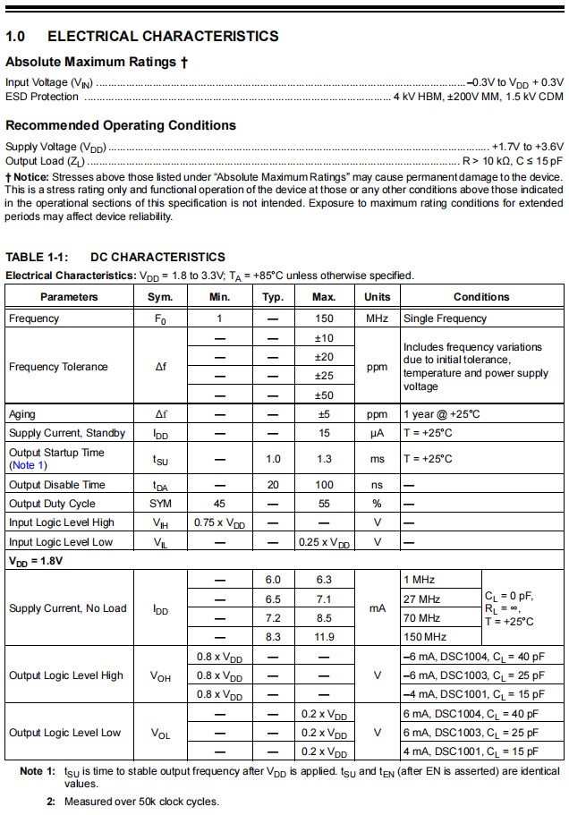 | DSC1003CI2-010.0000 | Microchip晶振 | DSC1003 | 10MHz | 1.8 ~ 3.3V |