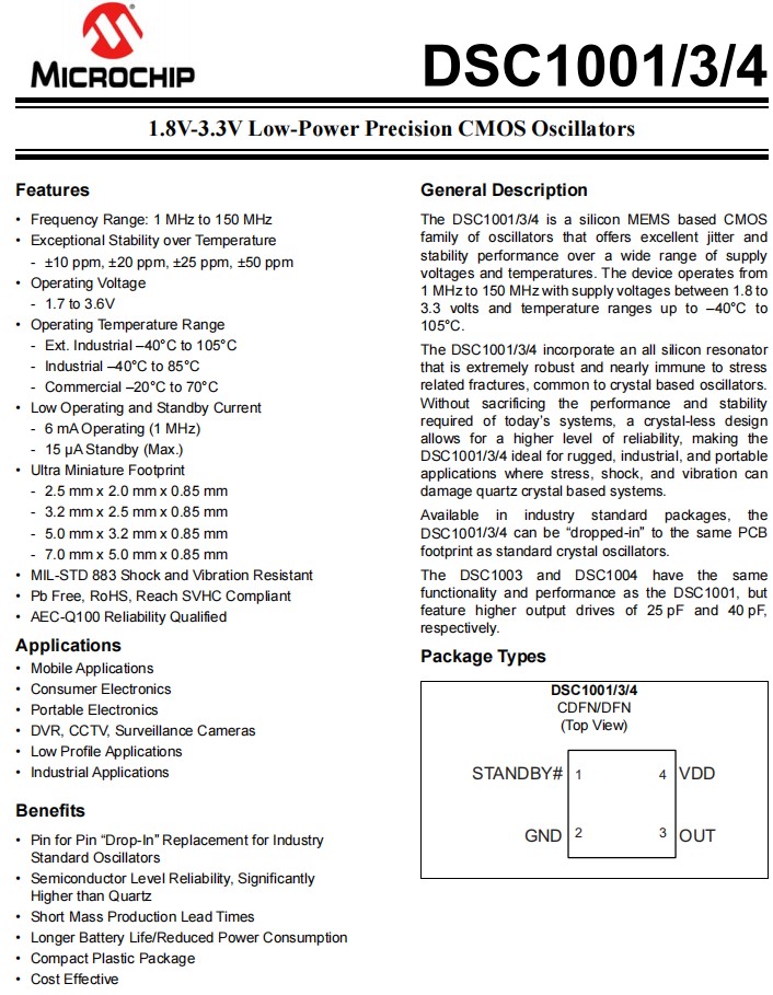 | DSC1004DC1-050.0000T | Microchip晶振 | DSC1004 | 50MHz |