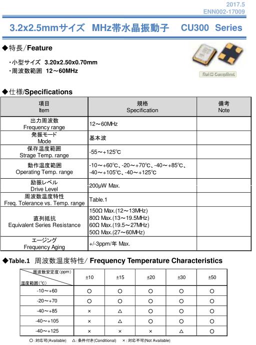 NAKA晶振,CU300晶振,無源四腳晶振,小型貼片石英晶振,外觀尺寸具有薄型表面貼片型石英晶體振蕩器,特別適用于有小型化要求的市場領(lǐng)域,比如智能手機,無線藍(lán)牙,平板電腦等電子數(shù)碼產(chǎn)品.晶振本身超小型,薄型,重量輕,晶體具有優(yōu)良的耐環(huán)境特性,如耐熱性,耐沖擊性,在辦公自動化,家電相關(guān)電器領(lǐng)域及Bluetooth,WirelessLAN等短距離無線通信領(lǐng)域可發(fā)揮優(yōu)良的電氣特性,滿足無鉛焊接的回流溫度曲線要求.
