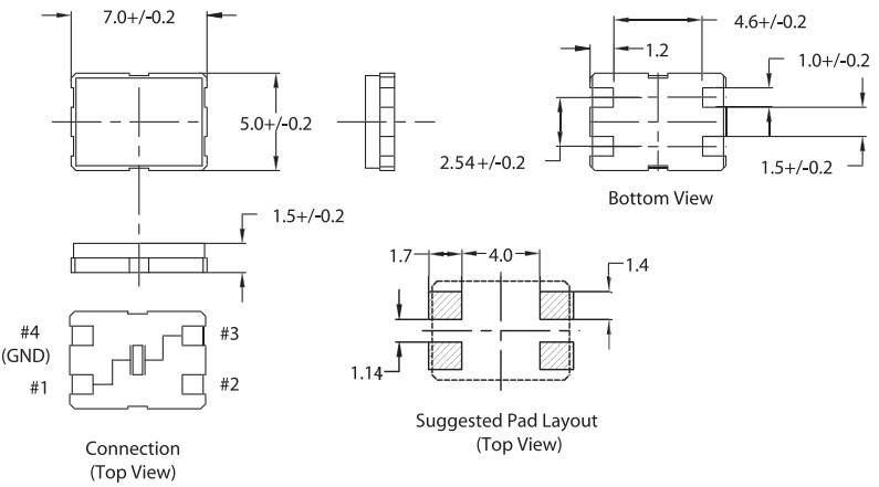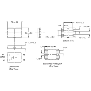 NF7-45.000-A-B-B-A-30pF,7050mm,45MHz,NEL晶振廠家,NF7,智能家居晶振,尺寸圖