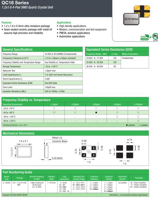 | General Specifications-QANTEK晶振 | QC16晶振 |