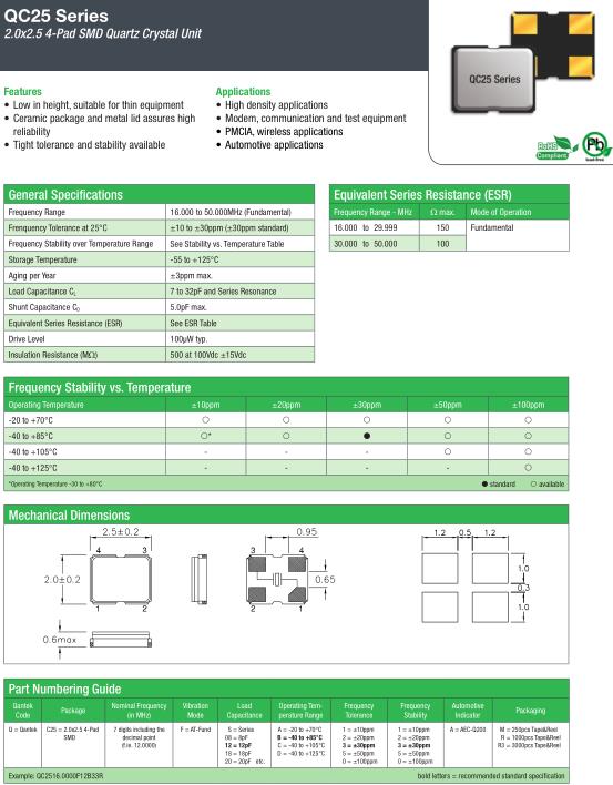 General Specifications-QANTEK晶振 QC25晶振