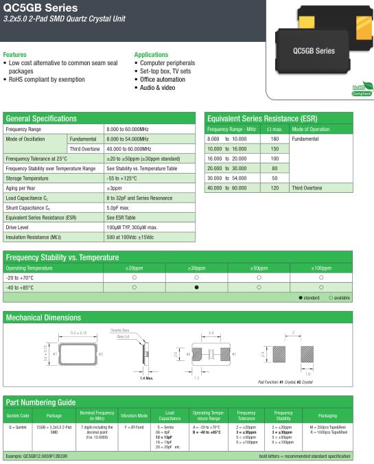 | General Specifications-QANTEK晶振 | QC5GB 晶振 | |