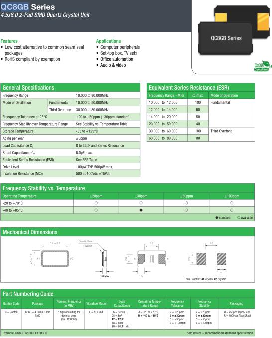 | General Specifications-QANTEK晶振 | QC8GB晶振 | |