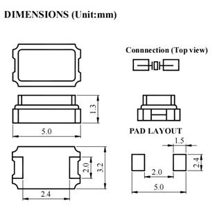 QCM20-21AF18-48.000MHz,5032mm,48M,QVS無源晶振,QCM20,兩腳貼片晶振,尺寸圖