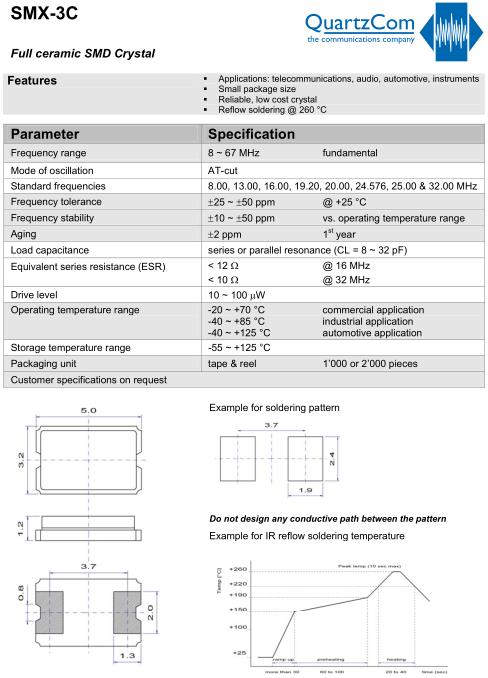 | Standard frequencies | 8.00, 13.00, 16.00, 19.20, 20.00, 24.576, 25.00 & 32.00 MHz |