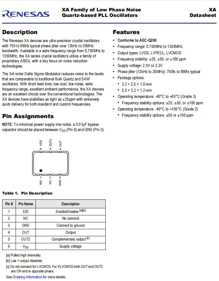 | XAH325025.000000K | Renesas晶振 | XTAL OSC XO 25.0000MHZ LVCMOS | XA |