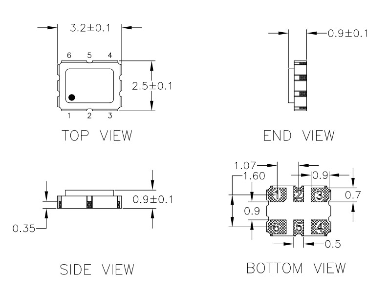 低相位噪聲晶振,XAL335106.250000I,Renesas石英貼片晶振,6G車載控制器晶振,LVDS貼片振蕩器,尺寸圖