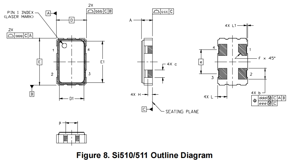 Si510千兆以太網晶振,Skyworks石英差分晶振,510ABA200M000BAG 尺寸圖