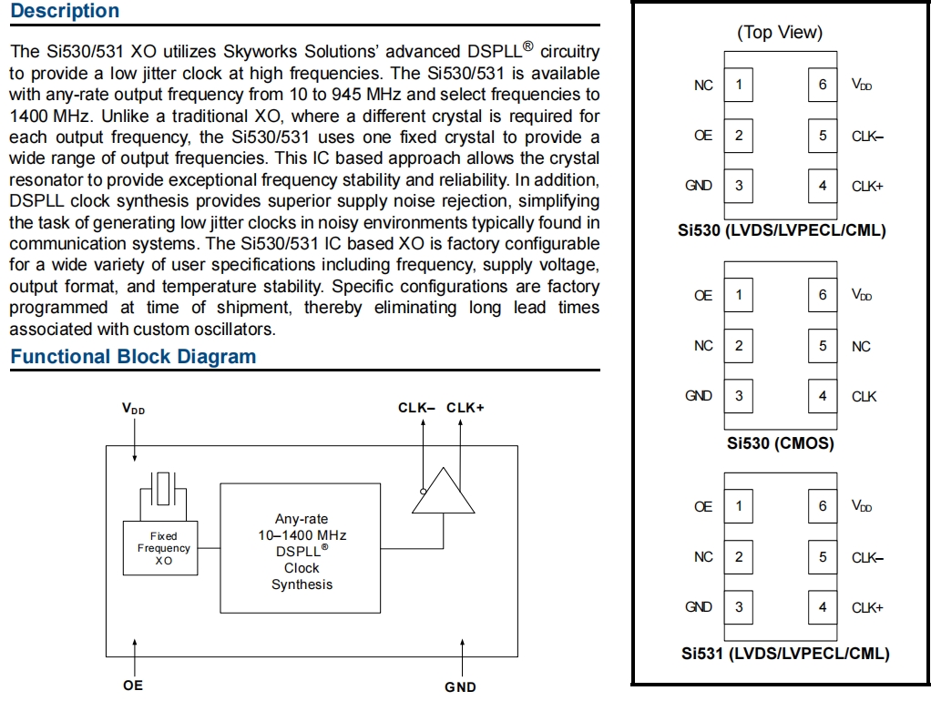 | 531BA48M0000DG | Skyworks有源晶振 | DIFFERENTIAL/SINGLE-ENDED; SINGL | Si531 | 48 MHz | LVDS |