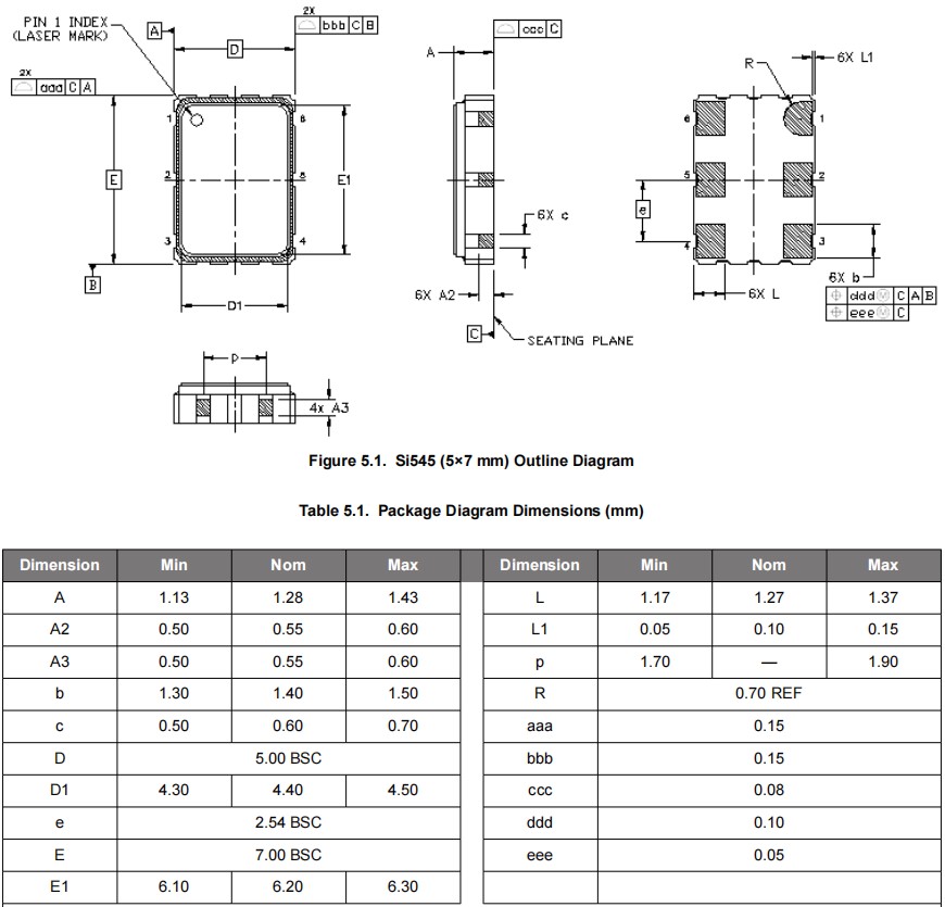 Skyworks差分晶體振蕩器,545BAB122M880ABGR,Si545數據中心應用晶振,尺寸圖