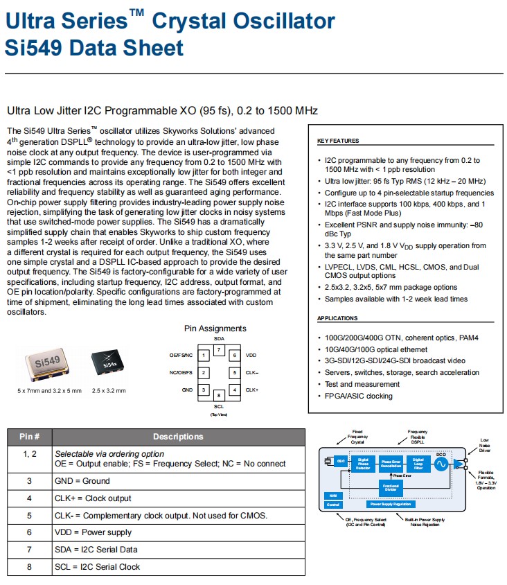 思佳訊LVPECL輸出振蕩器,549AAAA000118BCG,Si549無線網絡晶振
