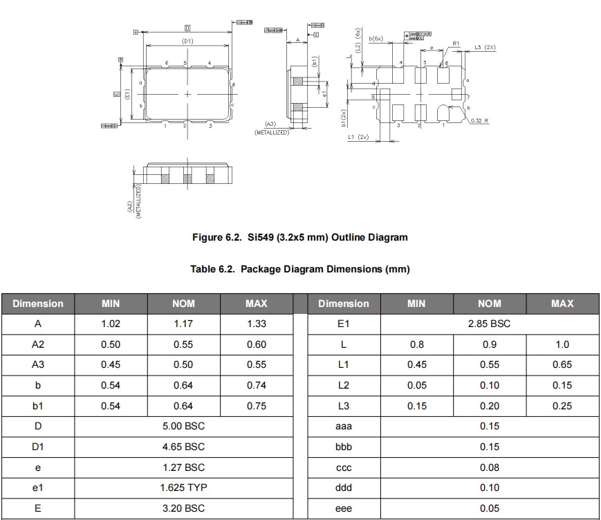 思佳訊LVPECL輸出振蕩器,549AAAA000118BCG,Si549無線網絡晶振,尺寸圖
