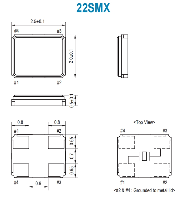 22SMX輕薄型晶振,22M360-8,6GWIFI晶振,SMI石英諧振器 尺寸圖