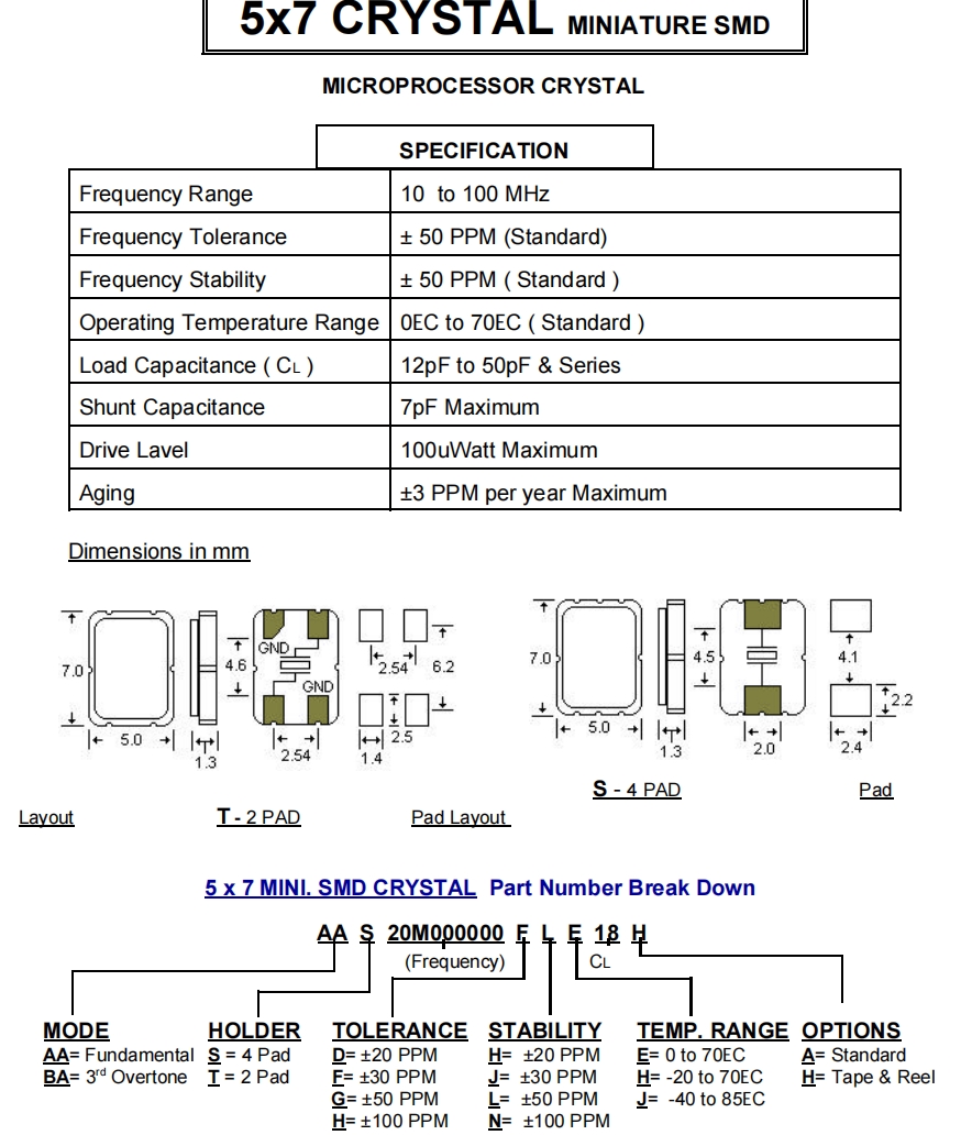 | Frequency Tolerance | ± 50 PPM (Standard) | |||||||||