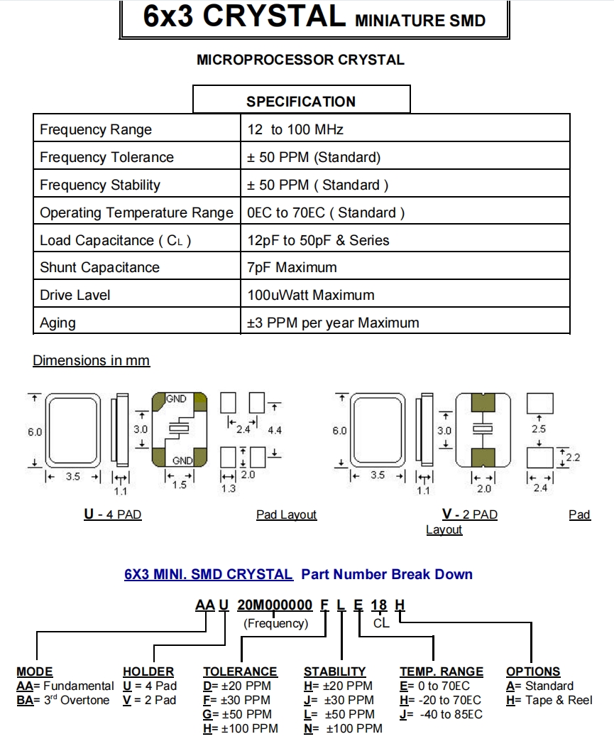 | Aging | ±3 PPM per year Maximum | |||||||||||