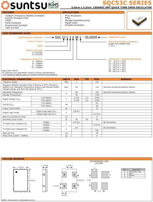 Suntsu晶振,SQC53C晶振,SQC53C3A481-20.000M晶振,5032mm體積的石英晶體振蕩器,有源晶振,該產品可驅動2.5V的溫補晶振,壓控晶振,VC-TCXO晶體振蕩器產品,電源電壓的低電耗型,編帶包裝方式,可對應自動高速貼片機自動焊接,及IR回流焊接(無鉛對應),為無鉛產品,超小型,質地輕.產品被廣泛應用到集成電路,程控交換系統,無線發射基站.