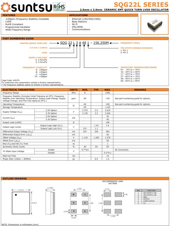 Suntsu晶振,SQG22L晶振,SQG22L3A481-8.000M晶振,有源晶振,是指晶體本身起振需要外部電壓供應(yīng),起振后可直接驅(qū)動(dòng)CMOS集成電路,產(chǎn)品本身已實(shí)現(xiàn)與薄型IC(TSSOP封裝,TVSOP封裝)同樣的1mm厚度,斷開時(shí)的消費(fèi)電流是15µA以下,編帶包裝方式可對(duì)應(yīng)自動(dòng)搭載及IR回流焊接(無鉛對(duì)應(yīng))產(chǎn)品有幾種電壓供選1.8V,2.5V,3V3.3V,5V,以應(yīng)對(duì)不同IC產(chǎn)品需要.