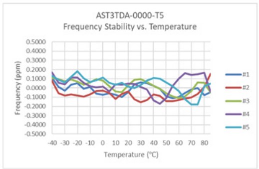 圖2:ast 3 TDA-0000-T5的頻率穩(wěn)定性與溫度的關(guān)系