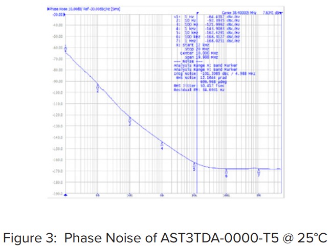 圖3:25°C時(shí)AST3TDA-0000-T5的相位噪聲