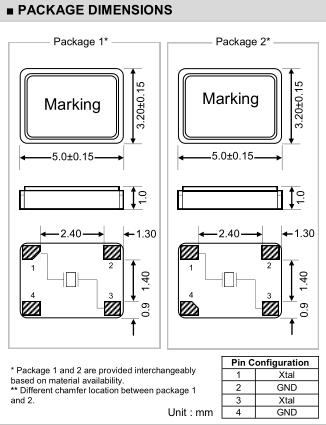 Fundamental: 7.000MHz ~ 10.000MHz: 100Ω max. 10.001MHz ~ 12.000MHz: 60Ω max. Fundamental: 12.001MHz ~ 19.000MHz: 50Ω max. 19.001MHz ~ 40.000MHz: 40Ω max. 3 rd overtone: 40.001MHz ~ 60.000MHz: 70Ω max. 60.001MHz ~ 170.000MHz: 100Ω max. 5 th overtone: 170.001MHz ~ 270.000MHz: 160Ω max. |