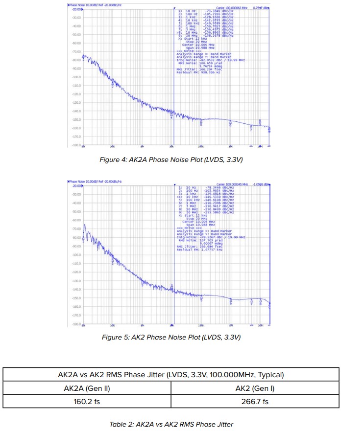 Table 4: AK2A vs AK2 RMS Phase Jitter (Vdd = 3.3V, Typical)