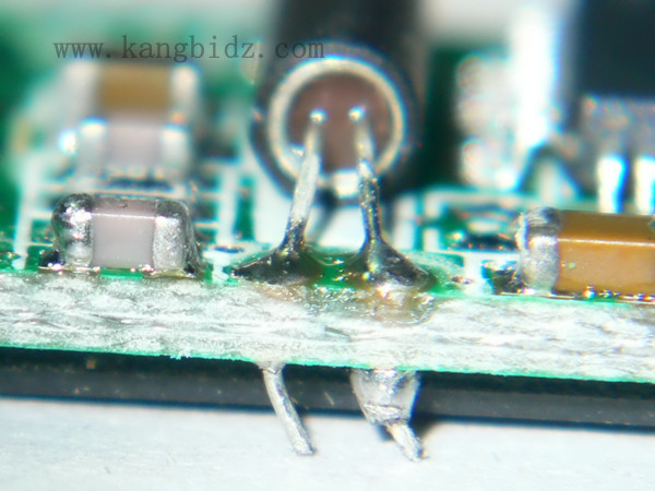 康比電子提醒:焊點也不是錫多、錫大為好,相反,這種焊點虛焊的可能性更大,有可能是焊錫堆積在上面,而不是焊在上面。若一次上錫量不夠,可再次補焊,但一定要等前次上的錫一同被熔化后再移開電烙鐵;若一次上錫量太多,可用烙鐵頭帶走適量。