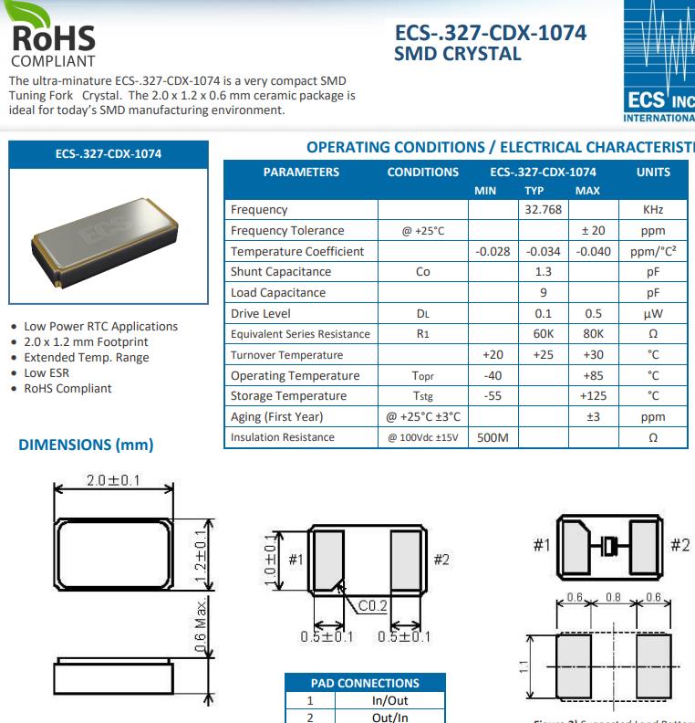 | ECS晶振 | ECX-34G | kHz Crystal (Tuning Fork) | 32.768kHz | -40°C ~ 85°C |