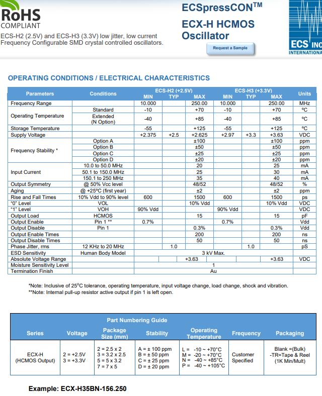 | ECX-H25BN-62.500 | ECS晶振 | ECSpressCON™ ECX-H | 62.5MHz | -40°C ~ 85°C |