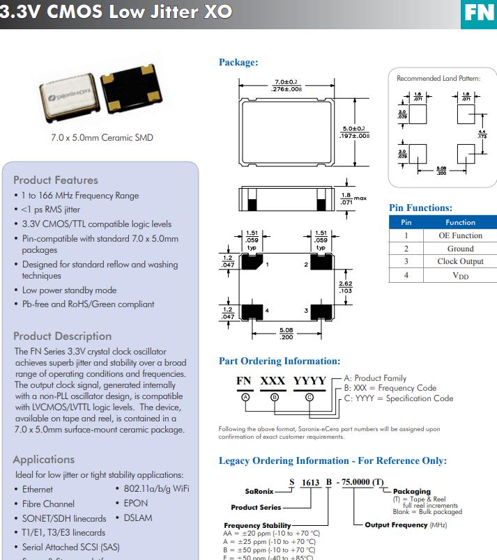 | FN3300074 | Diodes晶振 | SaRonix-eCera™ FN | 33MHz | ±50ppm | -20°C ~ 70°C |