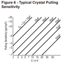其中C1、C0和C1都用相同的單位表示。 圖5顯示了頻率變化影響的典型曲線 關(guān)于負(fù)載電容的變化。 或者,通常將晶體的可拉性表示為切邊 負(fù)載電容變化的靈敏度,單位為ppm/pF。這是在 ppm/pF由: 其中C1、C0和CL以pF為單位,如圖6所示 對于(C0 + CL)的各種值。石英晶體諧振器極高的Q值相對較小的尺寸和出色的溫度穩(wěn)定