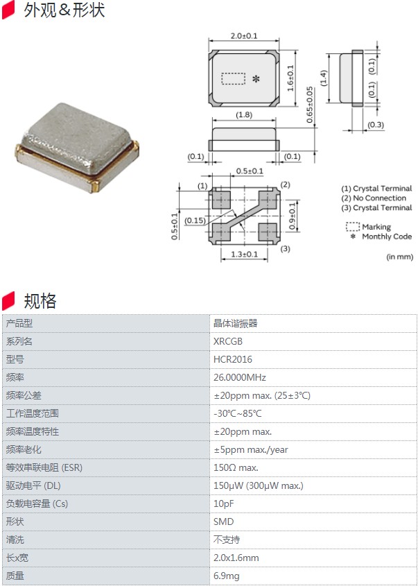 | XRCGB26M000F0Z00R0 | HCR2016 | 26.0000MHz | ±100ppm max. (25±3℃) | 工業(yè)級(jí) |
