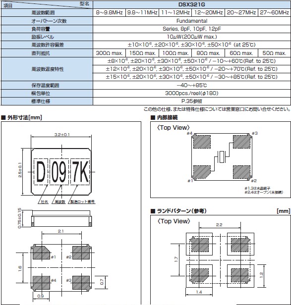 DSX321SL, 13 —60MHz, 3.2×2.5×0.5 mm,盤裝無源晶振金屬面