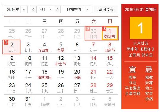 更多>>2016年五一放假公告