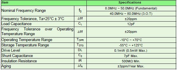 諧振器晶體規(guī)格