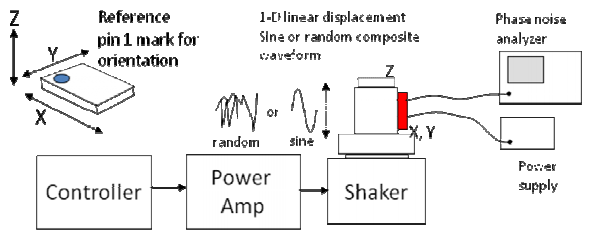 由于外力的方向,持續(xù)時間和強度可能不同,因此測量振蕩器在各種測試條件下的電響應(yīng)非常重要,以充分了解它們對沖擊和振動的敏感性.SiTime晶振評估振蕩器對三種不同振動或沖擊模式的響應(yīng):(1)正弦振動,(2)隨機振動和(3)脈沖沖擊.測試的器件都是市售產(chǎn)品,包括SiTime和一家競爭對手的基于微機電系統(tǒng)的振蕩器,以及幾家制造商的基于石英的振蕩器.我們包括帶有表面聲波晶體諧振器的石英振蕩器,已知在高工作頻率下具有低抖動.